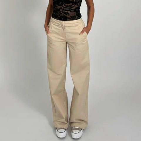 Venderby's Beige Denim Bukser i størrelse M med taljemål Bukserne er lavet af coton materiale og designet til kvinder.kan sendes med Dao for 43.