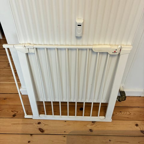 Sikkerhedsgitter i OK stand. Gitteret er brugt - se brugsspor på billedet - men fungerer fint.