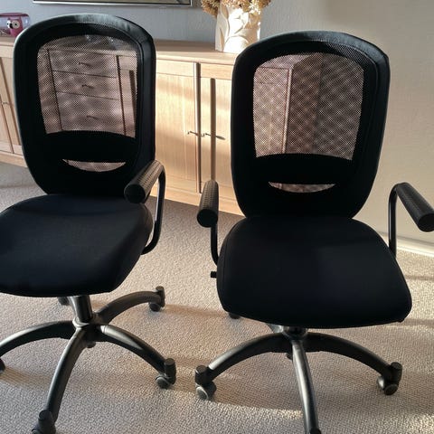 Kan justeres i højde og ryg, har hjul og god siddekomfort.