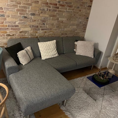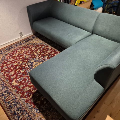 Sælger min sofa grundet flytning, den fejler ingenting udover et lille brud i det ene armlæn, som man ikke bemærker visuelt. Der er ekstra opbevaring i chaiselongen.