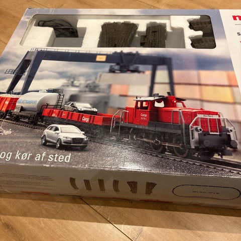 Märklin M 0987 - startsæt godstog m/DSB-lokomotiv m/lys - 2 godsvogne - skinneoval (M-skinner) og transformator - AC - skala 1:87 - HO.