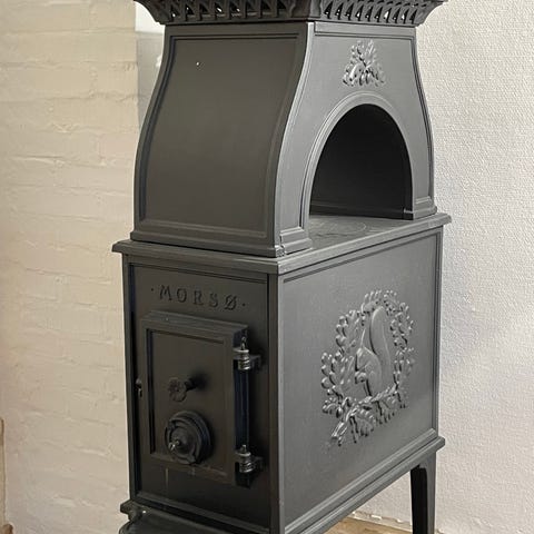 Sælger en solid og driftssikker Morsø brændeovn i sort støbejern. Ovnen har dobbelte frontlåger med glas, så man kan nyde flammerne, og et klassisk tidløst design.