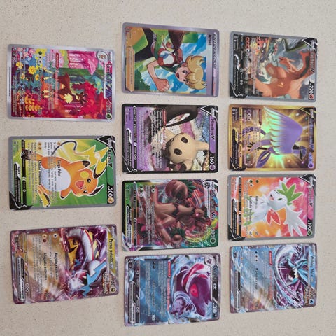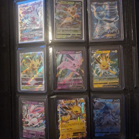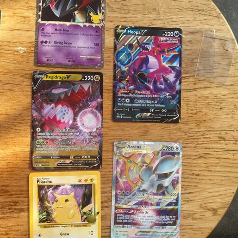 Pokémon kort samling bestående af Jirachi GX, Pikachu og Eevee kort. Kortene har holografisk finish og viser forskellige angreb og evner. Egnet til samlere og spillere af Pokémon kortspil.