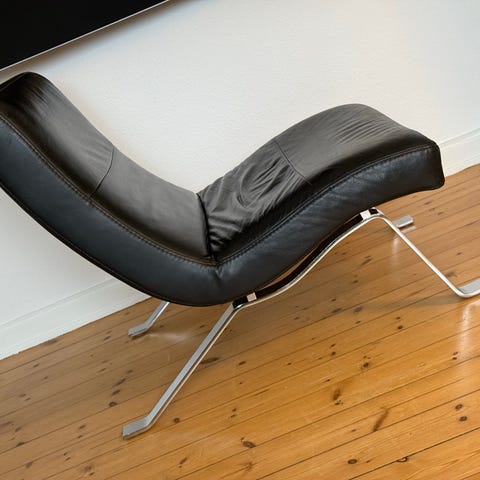 SUPER FLOT LÆNESTOL/LOUNGESTOL I BEIGE LÆDER MED STILRENT CHROM STEL .