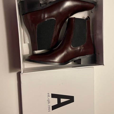 De lækreste nye Angulus støvler i sort skind, som kun har været på 2 gange. Nypris 1.599 kr. og jeg sælger dem for 1.100 kr.