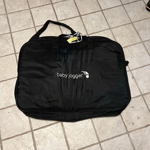 Original rejsetaske fra babyjogger (vi har brugt den til model “babyjogger summit x3” men burde passe til alle single modellerne. Ingen huller eller slidtage som sådan bortset fra nogle pletter foran (svært at undgå når den ryger på transportbånd gennem en lufthavn) og så er den ene af de dytter man åbner lynlåsen op med knækket af. Lynlåsen fejler dog intet, og den kan sagtens åbnes fint nemt uden.