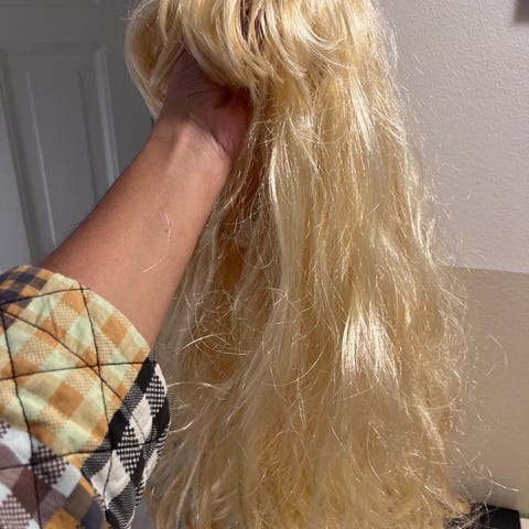 lang sort hår paryk med lilla striber , brugt 1 gang