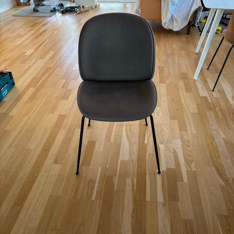 5 stk Gubi Beetle spisebordsstole med sort skal og sorte træben sælges. Bud er velkomne ☺️ 700 kr. pr. stk. God stand, få brugsspor. Den ene stol har en løs skrue, som ikke vil tage ordentligt fat, men den har tidligere siddet fint. Købt i 2018 for ca. 1.800 kr. pr. stk. Afhentes i Allerød, sender ikke. Skal afhentes senest d. 2/1-26.
