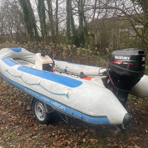 Hypalon rib sælges italiensk, 4 meter. Med 15 heste motor som er defekt. Skifter Strator men kører ikke godt. Hidea motor fra 2018 med 40 timer. Men er defekt pt