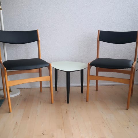 Her 2 fine Erik Buch model 50 stole med originalt blåt stof.