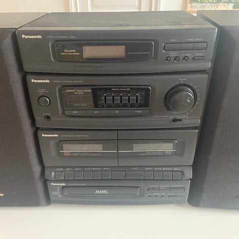 Panasonic Micro Hi-Fi System SC-PM250EG-K stereoanlæg med to højttalere. Farve: sort. Designet til at levere lyd til små til mellemstore rum. Enheden har en kompakt størrelse og moderne udseende.