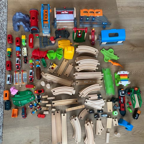 Kæmpe brio togbane mad mange tog og flere broer.. der medfølger også en elektrisk lysregulering med og mange bygninger.