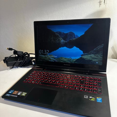 Lenovo Legion Y520-15IKBM bærbar computer med 15,6 tommer skærm. Designet til gaming med rød baggrundsbelyst tastatur og kraftfuld ydeevne.