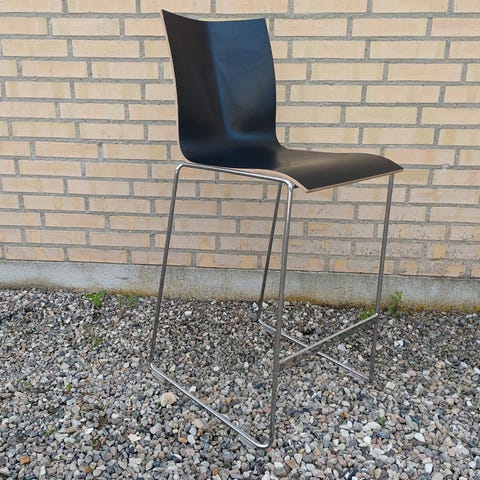 Barstole, model Chairik 119 Bar Stool, der er med skal af grønt plast samt medestel af 11 mm rør, i sortlakeret stål.
