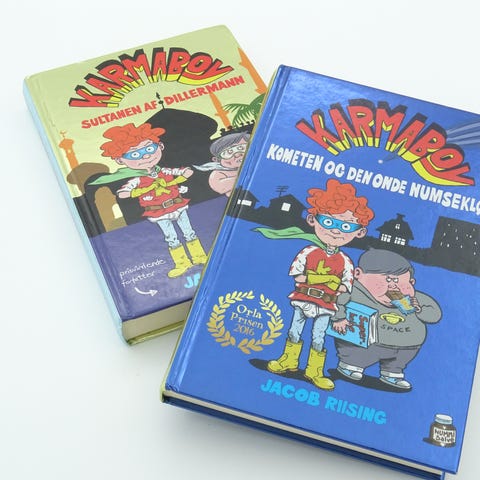 Jacob Riising Karmaboy børnebog illustreret af Torfart Carlsen, udgivet i 2016, hardcover, første oplag. Bogen indeholder 208 sider og er på dansk.