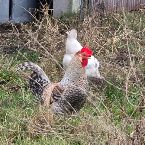 Vi er blevet begunstiget med utroligt mange haner i 2025, alle, med undtagelse af den hvide, er efter grønne og brune æg med en Creme Legbar-hane som far. Hanerne vil derfor give afkom med anlæg for disse farver, afhængig af hvilke høner de krydses med. Den hvide hane er efter en Lohmann Lite høne og en Creme Legbar-hane, og har derfor anlæg for hvide og blå æg.