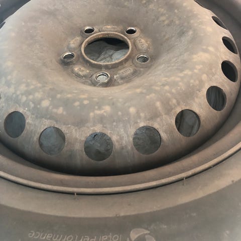 Vinterhjul med Bridgestone dæk på stålfælge.