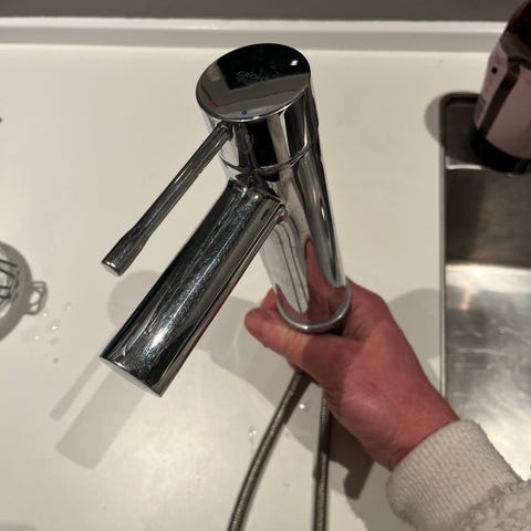Kromfarvet blandingsbatteri til håndvask med enkelt greb til temperatur- og vandmængderegulering. Passer til standard håndvaskeinstallationer.