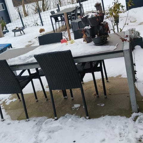 Havebord med granitplader inkl. havestole i polyrattan, meget velholdt, Vejle Ø.