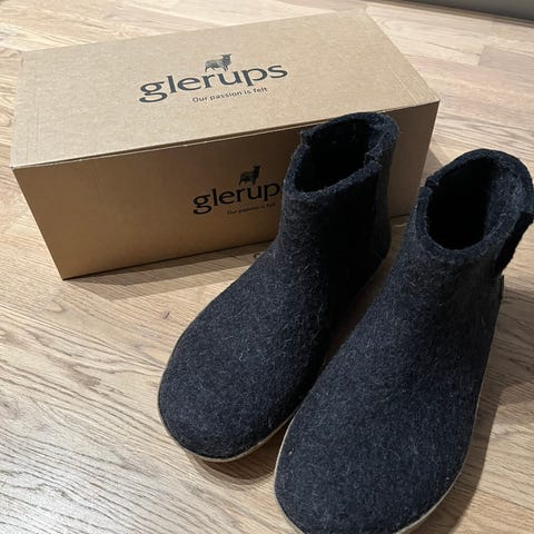 Fine uldsutsko fra Glerup med ruskindssål. Meget lidt brugt hvilket fremgår af sålen.