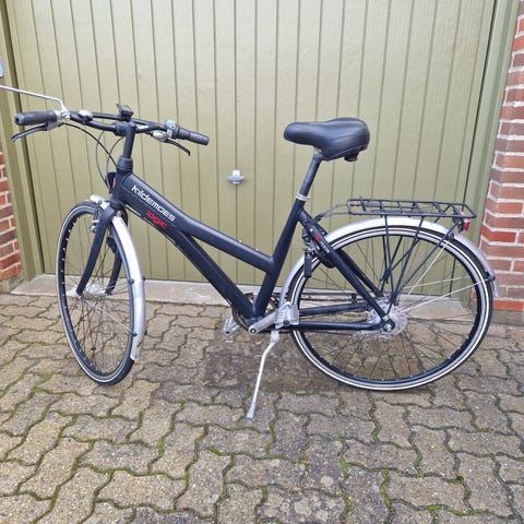 Kommer med 7 gear, for-og-bagskærme, reflekser for-og-bag, støttefod og ringklokke. Virker perfekt.