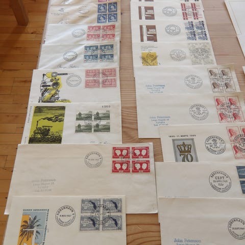 Lottet indeholder blandt andet: 2 stk. luftpost på førstedagskuverter, 2 stk. Røde Kors udgivelser, førstedagskuvert med Det danske kongepars besøg i Iran 1963 samt Temaarket: Spørge Jørgen.