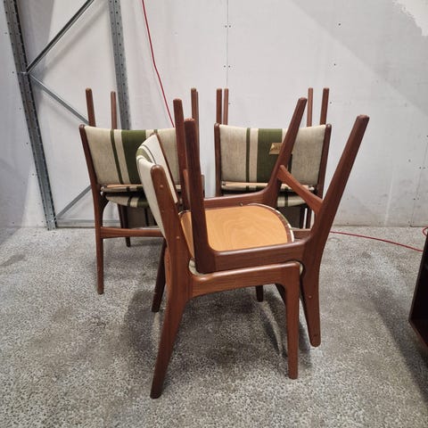 * Ombetrækning: Stolene er professionelt ombetrukket med et slidstærkt, grånistret uldstof fra den anerkendte tekstilgrossist Frederik Fiedler Egtved A/S. Dokumentation for dette findes under sæderne.