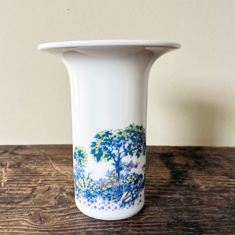 Rosenthal studio-linie lille, trekantet skål med påfugl, der ligner Bjørn Wiinblads streg, men den er ikke signeret, så jeg tør ikke lægge hovedet på blokken. Ø ca. 12 cm.