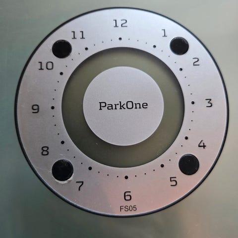 Sælger dette parkeringsur da vi har fået et nyt. Den virker rigtig fint. Den bruger 2 x AAA batterier, som medfølger. Mål: Ø9,5 x 2,5 cm dyb. Stiller sig selv hver gang du parkere.