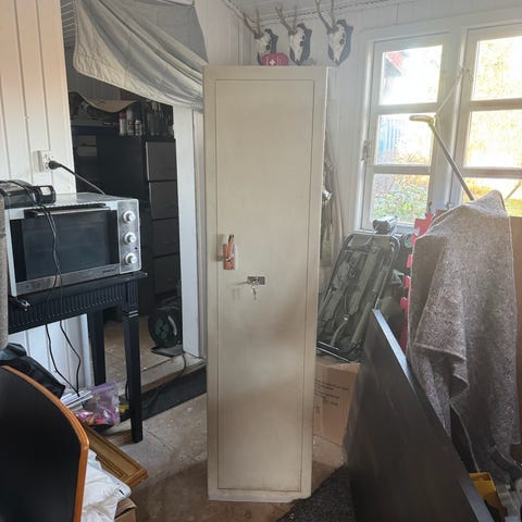 • Højt, smalt skab – typisk 5–8 langvåben