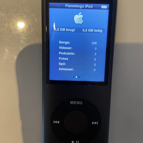Apple iPod med 8GB lagerplads i lilla farve. En bærbar musikafspiller med kapacitet på 8GB, egnet til opbevaring og afspilning af lydfiler. I god stand medgift batteri. Bemærk dog pixels der er optisk og kosmetisk udfordrende.