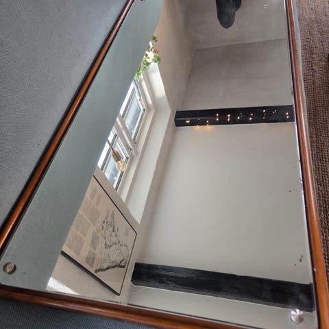 Forstørrelsesspejl, b: 18 h: 23, Skønneste 60-70 original Retro, i super fin form. Med bøjlen på bagsiden kan det enten stå eller hænge. Super stand på forstørrelses spejlet og fint lys, har endvidere strømmen med frem hvor du skal bruge den til fx. hårtørrer eller barbermaskine. Original gammel ledning også i perfekt stand.