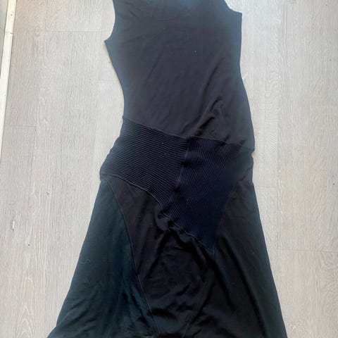 KATHLEEN MADDEN str xl SORT SILKEVELEUR LANG NEDERDEL MED VIDDE SOM FALDER MEGET FLOT