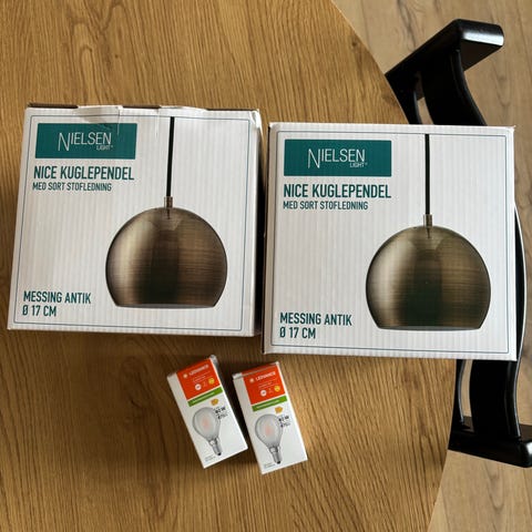 Sælger disse 4 pendler i farverne mat sort, børstet kobber, antik messing og galvaniseret stål.