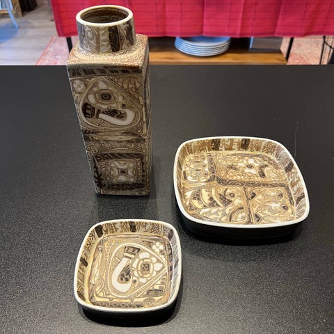 Sættet fungerer perfekt sammen og er ideelt både til samler, indretning eller som markant dansk design fra 1960’erne/70’erne.