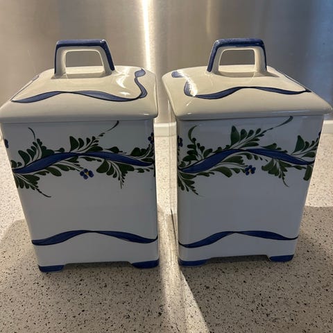 Grønlandsk keramik opbevaringskrukke i keramik med hvid glasur og beige kant. Krukken har et enkelt design og er velegnet til opbevaring i køkkenet.