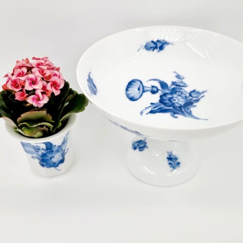 Royal Copenhagen Blå Blomst opsats nr. 8064. Opsatsen har en hårrevne - se de sidste to fotos - den er meget svær at spotte indvendigt - lidt mere tydelig på ydersiden