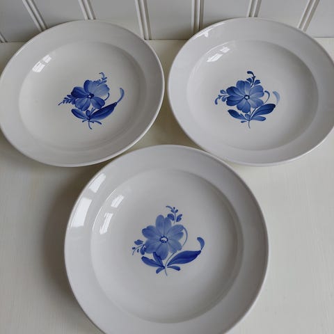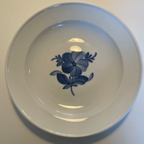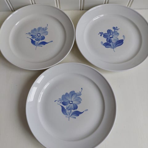 De sjældne fattigmand blå blomst frokost tallerkener 20 cm i diameter. 100kr pr stk. Jeg har 10 stk.
