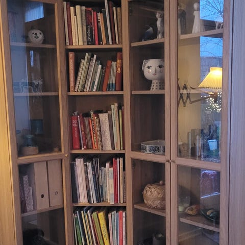 Der er vitrinelåger på den øverste halvdel og massiv låge på den nederste halvdel af de høje.