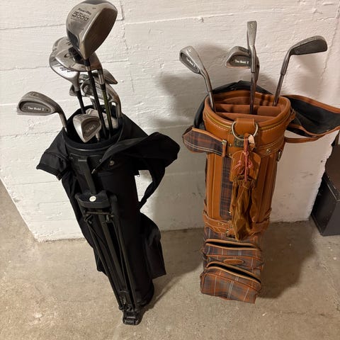2 golf tasker + 13 køller - afhentes i Vanløse