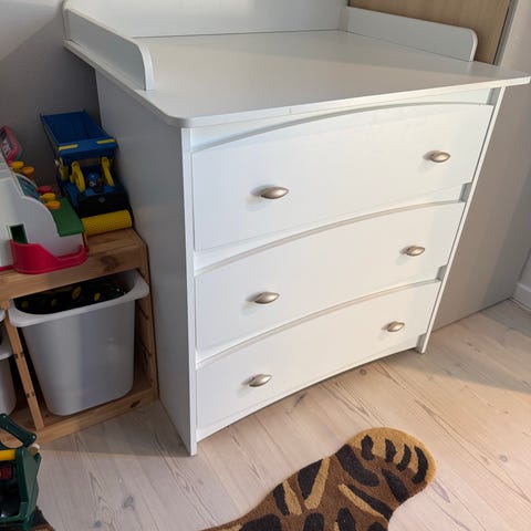 BabyDan puslebord i grå farve. Bordet har en praktisk skuffe og hylde til opbevaring af babyartikler. Designet til nem adgang og komfort under pusleaktiviteter.