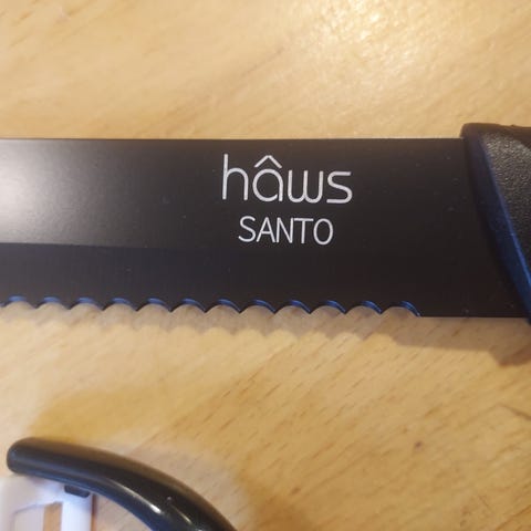 Alessi Mami brødkniv lavet i rustfrit stål. Kniven har et enkelt og funktionelt design, egnet til skæring af brød og bagværk.