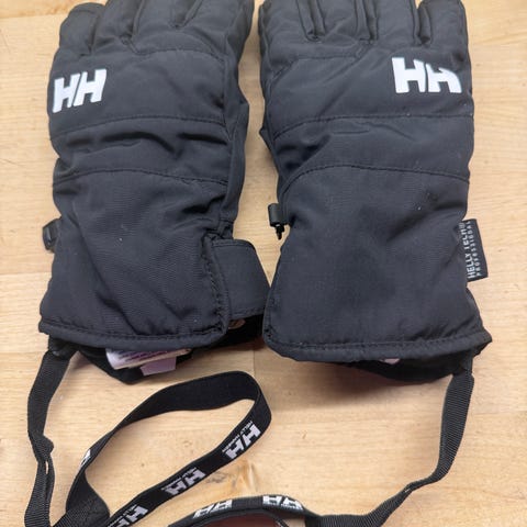 Sorte handsker til børn (str. 12 år) med skindforstærkninger på indersiden for bedre holdbarhed. Har elastikker der kan sætter rundt om håndleddet, så de ikke bliver væk. Nypris 400,-