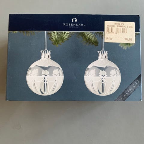 Blandet julepynt fra Georg Jensen og Karen Blixen + uåbnede julekugler, håndlavede glaskugler og en adventsstage. God stand. Kommer uden kasser