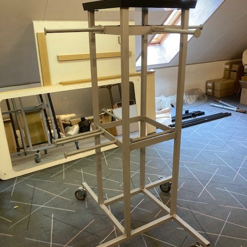 Butiks stativ til bla frugt og grønt. Har stået ude. I okay stand. Tre stk. Pris per stk