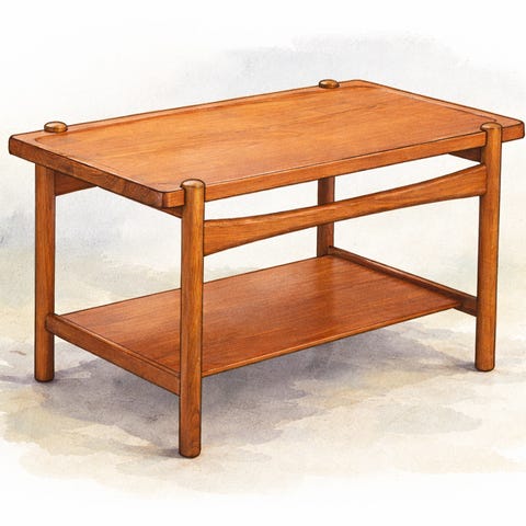 Udført i massiv eg med hylder i teak – en klassisk og velafbalanceret materialekombination, som kendetegner Wegners funktionelle tilgang til hverdagsmøbler.