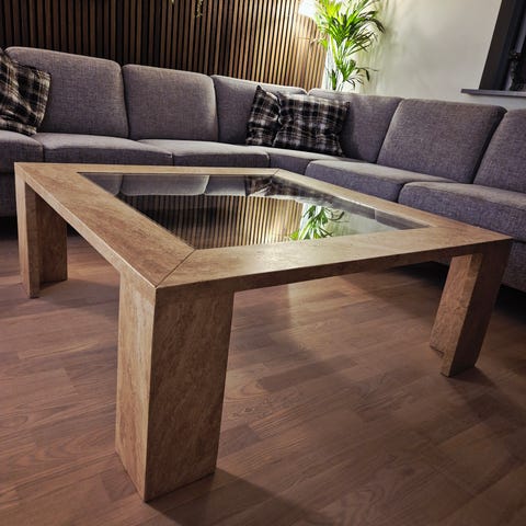 Megaflot sofabord i marmor i mørk farve med grøn/rødlige accenter. Som nyt.
