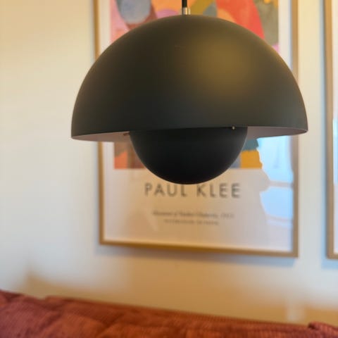 Verner Panton "Flowerpot" VP7 i farven rødbrun (udgået farve), 37 cm i diameter med stofledning. Stand som ny - uden ridser eller buler. Sælges grundet flytning. Kun afhentning, prisen er ikke til forhandling.