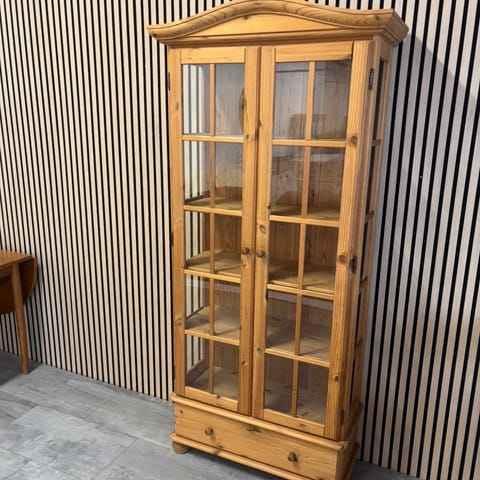 Vitrine skab. sæt den på din skænk/kommode eller hæng den op. Der medfølger ikke beslag. Mange muligheder. Fjern top. Fjern bund eller sæt hylder /kroge i bund