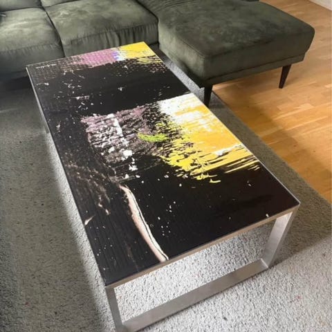 Standen på bordet er fin, men med lidt brugsspor. I det ene hjørne er et lille afslag, som dog ikke har den store betydning.